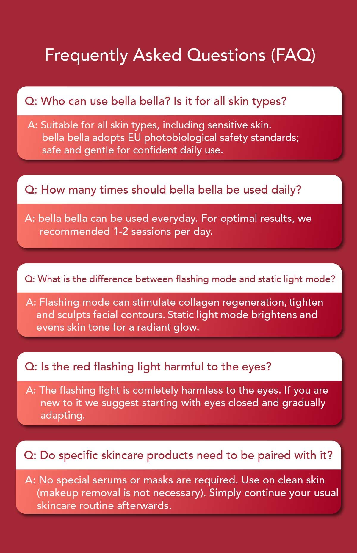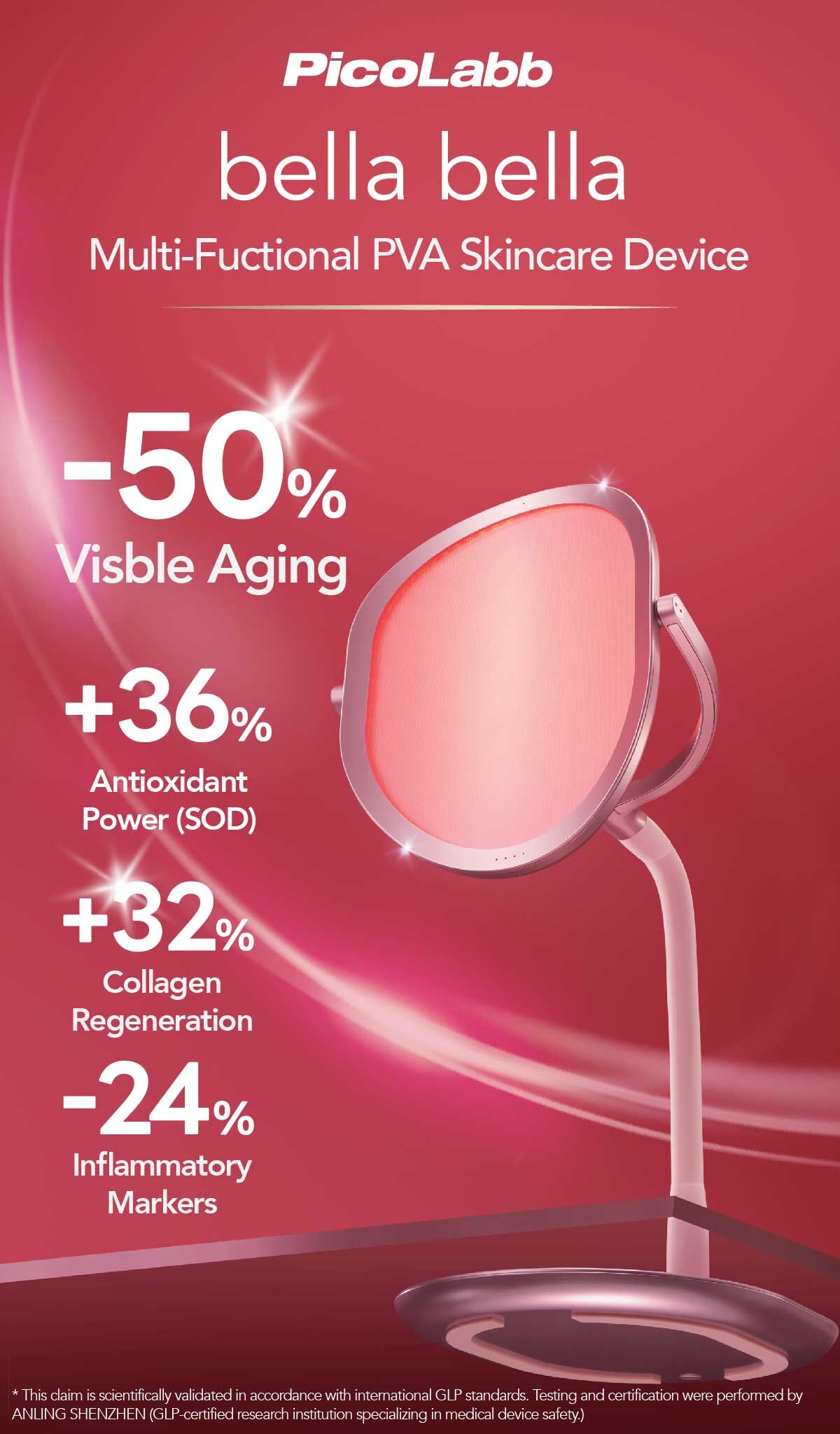 A groundbreaking skincare solution that defies traditional norms. Utilizing our proprietary technology, bella bella harnesses the power of red light release the exclusive PVA skin-beautifying energy, providing professional-level care and restoring youthful, beautiful skin.